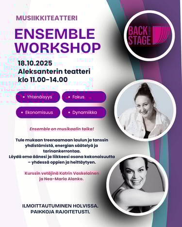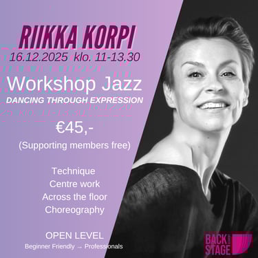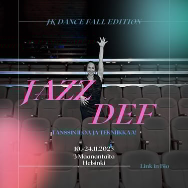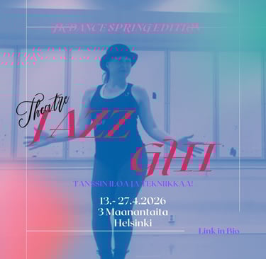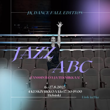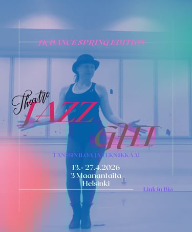 Jos tanssijalkaa jo vähän vipattaa, haluat valmistautua tulevaan projektiin tai syventyä teatterijazzin monipuoliseen maailmaan, tämä kurssi on sinulle. Tämä on jo kolmas jazztanssikurssi yhteistyössä JK Dance Teamin kanssa, joka tutustuttaa leikkisästi aakkosjärjestyksessä jazztanssin eri osa-alueisiin.