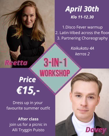 Työpaja sopii kaikentasoisille tanssijoille, jotka haluavat kehittää ilmaisuaan ja tekniikkaansa tangossa. Et tarvitse omaa paria, osallistujat vaihtavat pareja ja tanssivat yhdessä, mikä luo rennon ja osallistavan ilmapiirin.